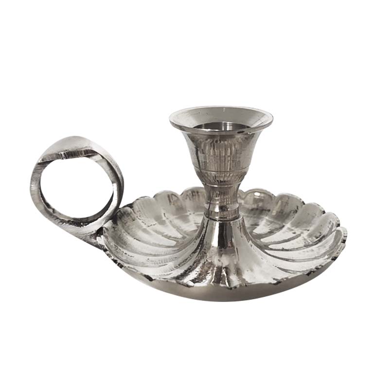 Κηροπήγιο μονόκερο επινικελωμένο με λαβή και βάση πιατάκι.