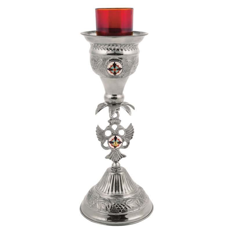 Καντήλι ακοίμητο Αγίας Τραπέζης επινικελωμένο, με δικέφαλο αετό.