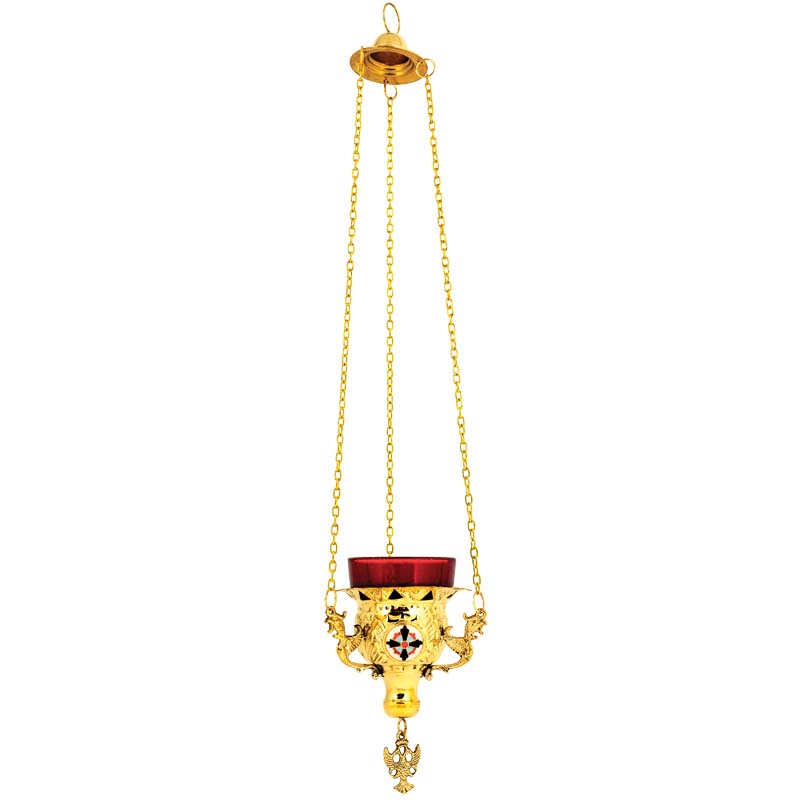 Καντήλι κρεμαστό επίχρυσο με σμαλτάκι. (βυζαντινό)
