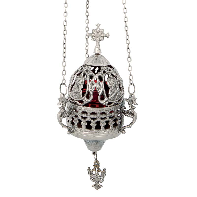 Καντήλι κρεμαστό επινικελωμένο με καπάκι.