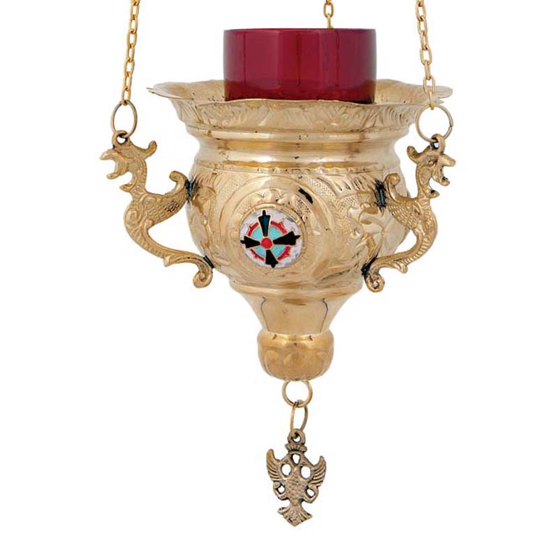 Καντήλι κρεμαστό μπρούτζινο με σμαλτάκι (βυζαντινό).