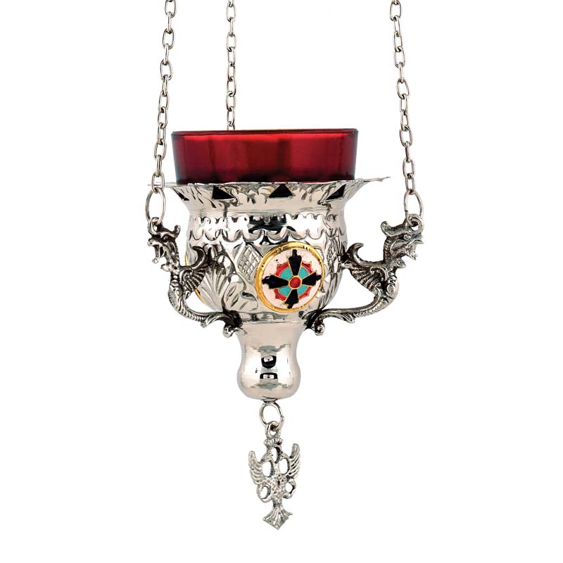 Καντήλι κρεμαστό επινικελωμένο με σμαλτάκι (βυζαντινό).