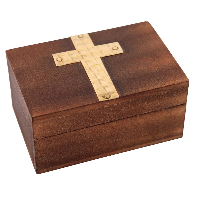 Κουτί ξύλινο με αποσπώμενο καπάκι και μπρούτζινο σταυρό.