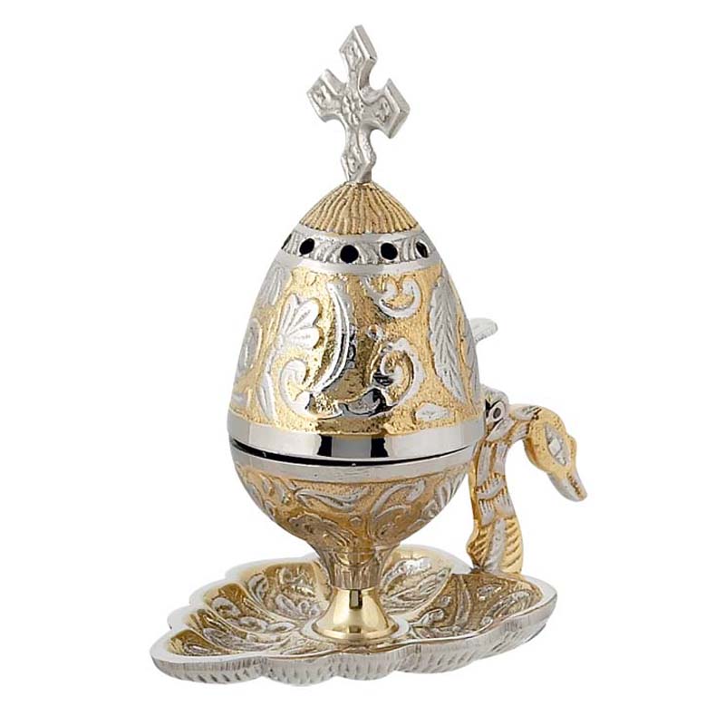 Σκαλιστό δίχρωμο (μπρούτζινο-νίκελ) οικιακό θυμιατό.