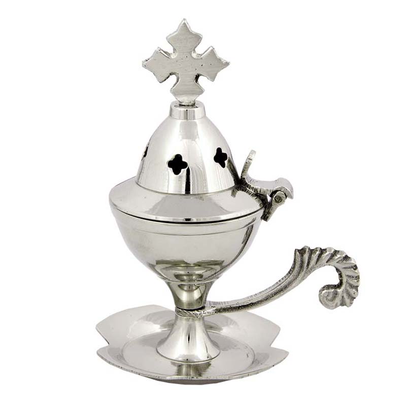 Small plain nickel-plated home censer with saucer.